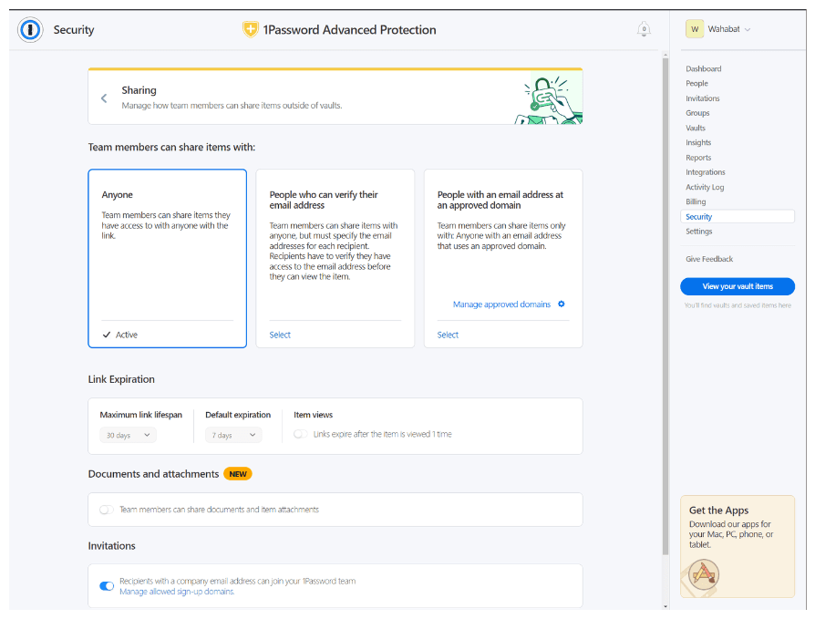 From there, you’ll see a bunch of options from 1Password Advanced Protection: